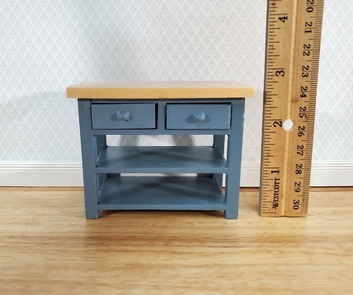 Dollhouse Kitchen Prep Table Island With Shelves Blye Gray 1 12 Scale Miniature Ebay